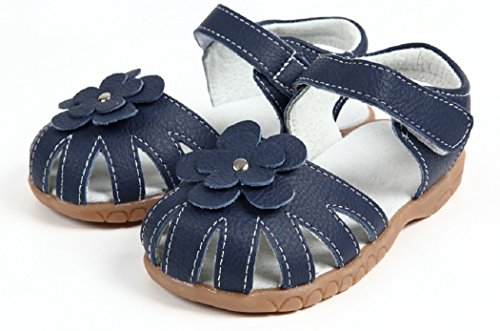 【Dream-studio】可愛い ベビー 子供 女の子 サンダル つま先 保護 お花 モチーフ フォーマル 靴 各サイズ(サイズ30/17.5㎝, ネイビー)