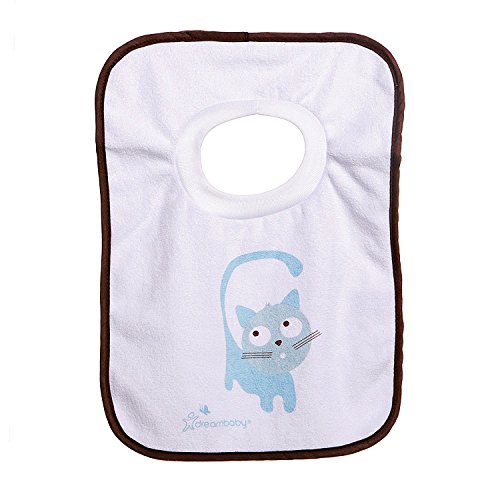Dreambaby terry cloth pull over bibs will let your toddlers enjoy food and discover learning how to eat it without you worrying about the mess;Featuring two different designs: Dog and Cat;One size fits most;Comes in a pack of 4