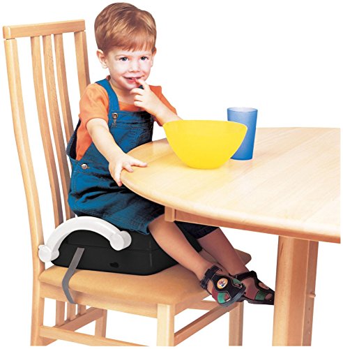 Recommended for ages 8-36 months;4-position portable booster seat, with 2 adjustable height positions, enables a child to sit comfortably at any table;Safety straps secure seat firmly to adult size chair;Folds into a portable carrier;Wipe with a damp cloth and mild soap to make cleaning a breeze!