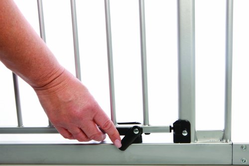 The door will open in both directions, but can be easily adjusted to open in one direction only;It will fit an opening of 30 325, but can expand up to 1965 with the purchase of extensions;The gate includes Dreambaby's new EZ Check indicator that will show green when the gate is properly installed and properly closed or red when the door is open or if the tension needs to be adjusted;This gate includes a new 3rd lock for extra security;Pressure mounted
