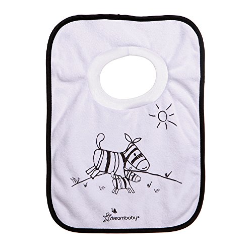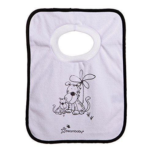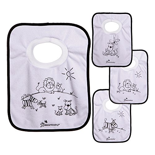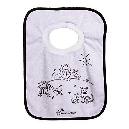 Dreambaby terry cloth pull over bibs will let your toddlers enjoy food and discover learning how to eat it without you worrying about the mess;One size fits most;Comes in a pack of 4;Different jungle themed designs