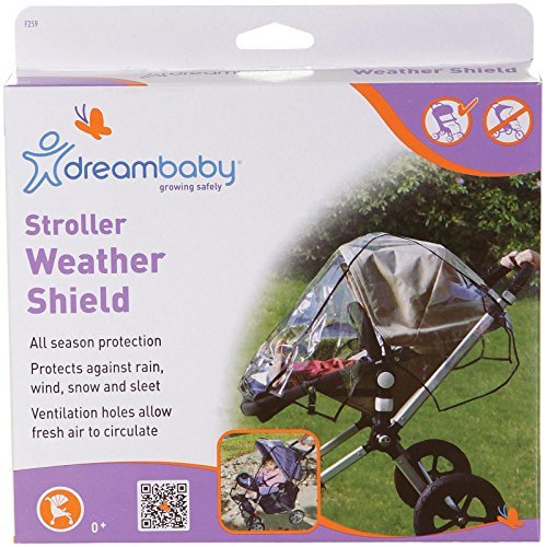 Dreambaby Stroller Weather Shields are easy to clean and dry and slip quickly and easily on to most standard strollers;Keep baby safe from the elements all year-round;Simply unfold and slip over stroller;Ventilation holes allow fresh air to circulate;Black Piping