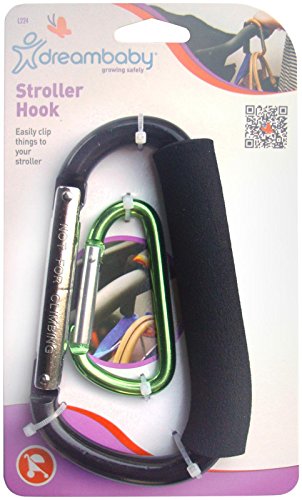 Soft, heavy-duty handle that clips easily onto almost every stroller;Padded handle creates friction and won't slide down;Contains two stroller hooks of different sizes, for even more convenience;Easily opens with one hand;Holds a great deal of weight including shopping bags, nappy bags, handbags and more