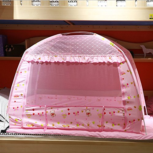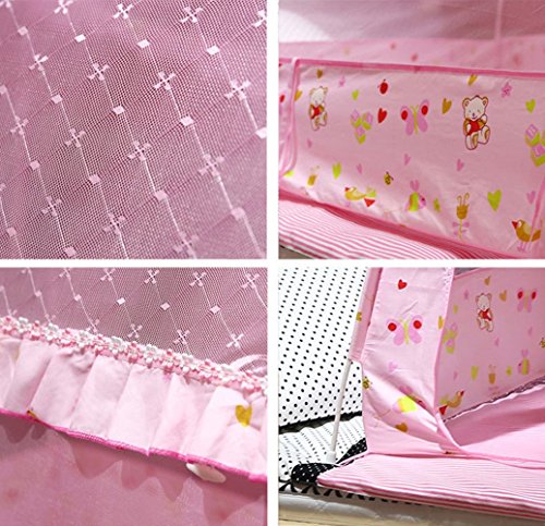蚊帳 ベビー かや ベビーベッド用 底付き モスキートネット テント式 ムカデ対策 蚊帳 赤ちゃん 虫よけネット (ピンク)