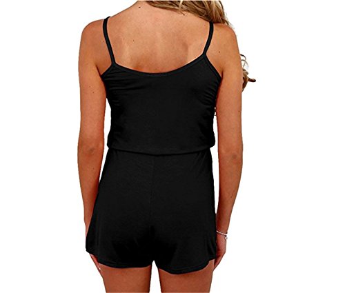 レディース オールインワン 水着 体型カバー ショートパンツ ワンピース 女性用 短パン ロンパース ビーチウェア ギャルギャル服 (L, ブラック)