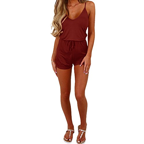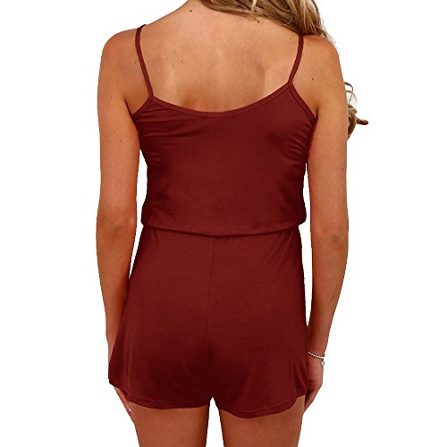 レディース オールインワン 水着 体型カバー ショートパンツ ワンピース 女性用 短パン ロンパース ビーチウェア ギャルギャル服 (XL, レッド)