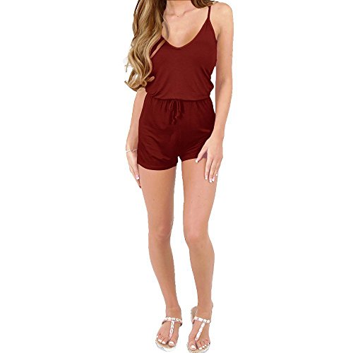 レディース オールインワン 水着 体型カバー ショートパンツ ワンピース 女性用 短パン ロンパース ビーチウェア ギャルギャル服 (S, レッド)