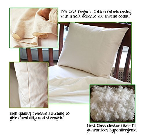 All our pillows are manufactured and shipped from the USA. The Pure Sleep pillow shell is 100% certified organic cotton, woven in a soft and delicate 200 thread count. The pillow filling is supportive cluster and conjugated fiber that is supportive yet soft. The pillows are non-allergenic, washable and without exception the finest toddler pillow of its class!WASHING & CARE INSTRUCTIONS