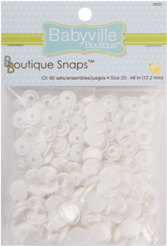 DRITZ- Babyville Boutique: Snaps. These snaps are the perfect closure for a variety of diapers. They can also be used for apparel and baby accessories. Available in a variety of colors (each sold separately). This package contains sixty sets of snaps. WARNING: CHOKING HAZARD. Small parts. Not for children under 3 years. Imported.