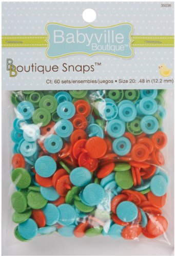 DRITZ- Babyville Boutique: Snaps. These snaps are the perfect closure for a variety of diapers. They can also be used for apparel and baby accessories. Available in a variety of colors (each sold separately). This package contains sixty sets of snaps. WARNING: CHOKING HAZARD. Small parts. Not for children under 3 years. Imported.