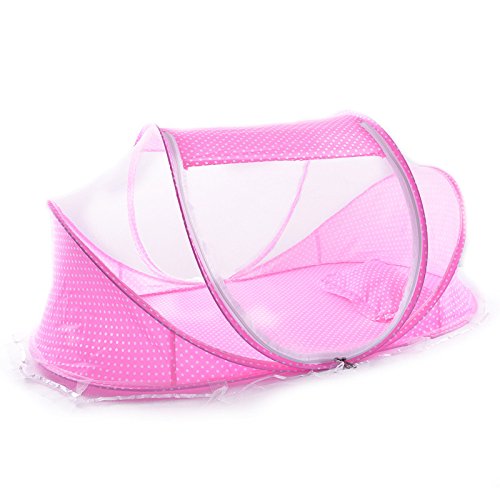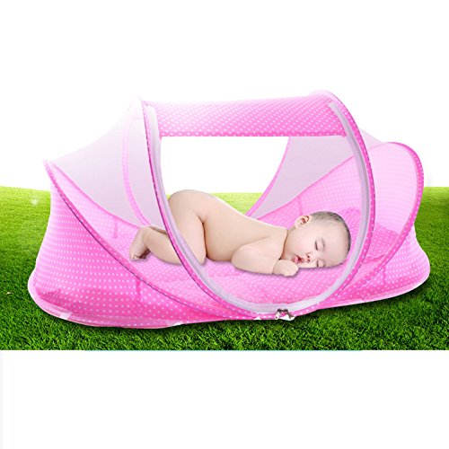 Dulcii ベビー蚊帳 ベビー用蚊帳ベッド 折りたたみ 蚊対策 虫よけ テントベッド ワンタッチ 赤ちゃん用 子供用 コンパクト 収納 安眠 持ち運びに便利 (ピンク)