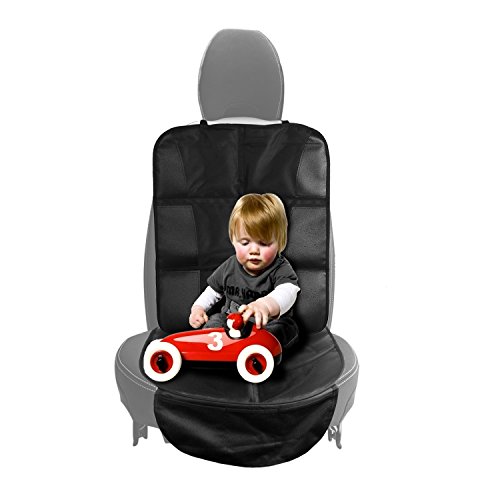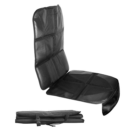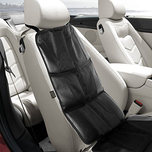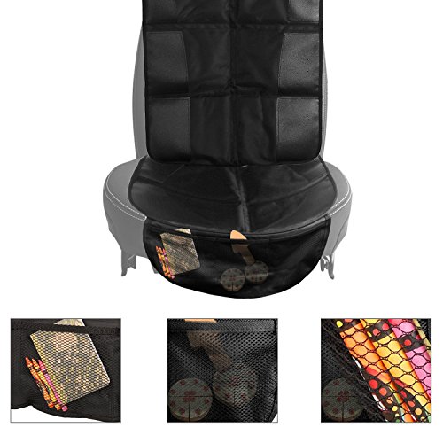 Duomishu チャイルドシートマット 車保護シート 滑り止め 収納ポケット付き ブラック