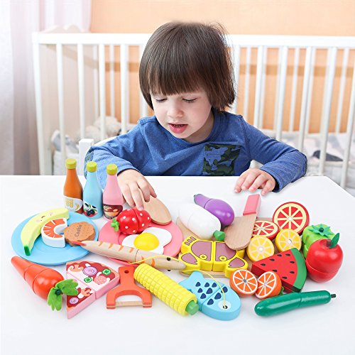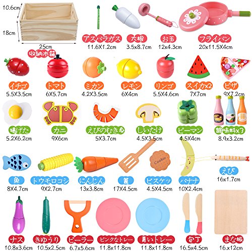 - 【木製おもちゃ・マグネット式長持ち】 マグネットが埋め込まれている、画期的なおままごとシリーズ♪繰り返し遊んでも外れる心配がなく何度もサクサク本格ままごとが楽しめます! 天然木を採用しており、切ったときにしっかりとサクッと切れる感覚を実現させる。しかも、すべて角が丸くなっていて、ケガを心配要りません。子供が噛んだりしてもいいので安心して遊べます。