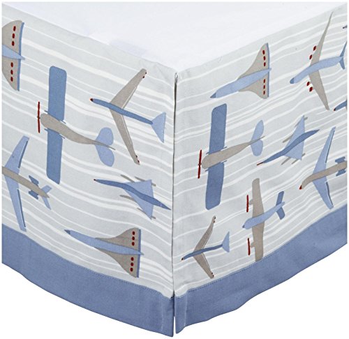 Add the finishing touches to your crib with a crib skirt from DwellStudio;Features airplanes of different sizes and shades of blue, for the little adventurer;100% cotton canvas with a 65% polyester and 35% cotton platform;Fits standard cribs (overall: 28'' x 52'' with a 12'' drop);Machine washable
