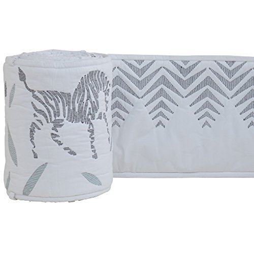 Zebra and leaf embroidery over a white background;Reserves to a gray embroidered chevron print;Perfect for your infant or young child, or for gift giving;Fits standard U.S. cribs;Overall: 10 H x 60 W