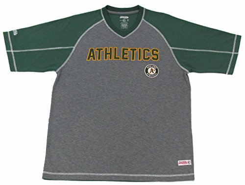 MLB Oakland AthleticsメンズFine GaugeメッシュVネックラグランシャツ L グリーン