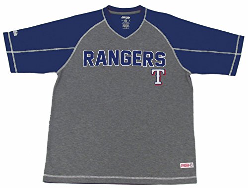 MLB Texas RangersメンズFine GaugeメッシュVネックラグランシャツ XL ブルー