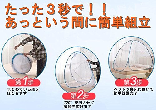 特殊なワイヤーで簡単に折り畳み、組立できちゃうワンタッチ式の蚊帳です