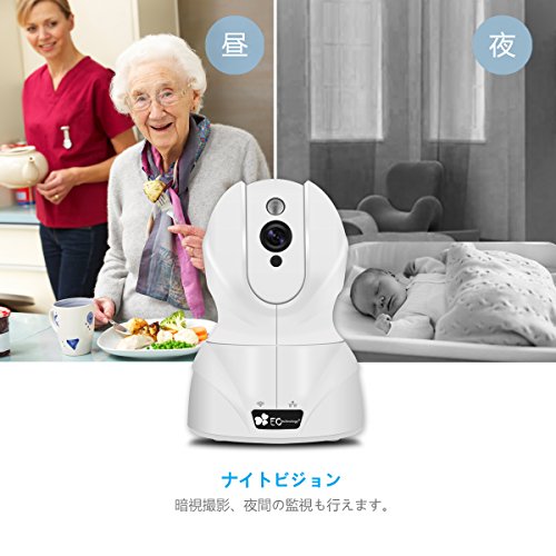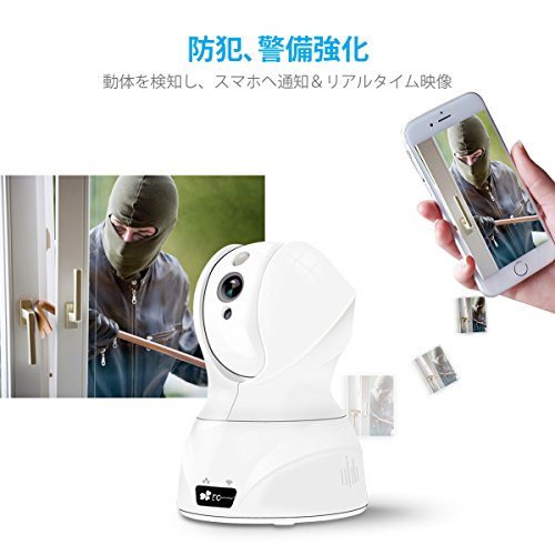 ネットワークカメラ EC Technology ワイヤレスIPカメラ 720P 100万画素 ベビーモニター 監視カメラ WIFI対応 暗視撮影・マイク内蔵通信可能 動体検知 アラーム機能 ペット/子供見守り ホワイト