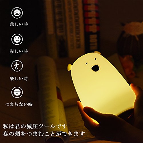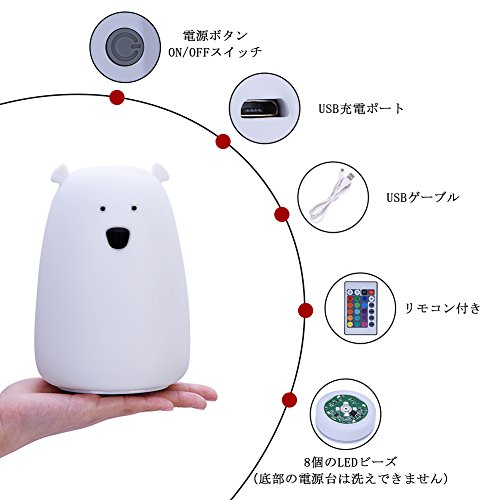 - 【リモコン付き】呼吸熊ランプの叩くという形式で色変更ではなく、リモコンで遠隔コントロールでき、点灯、消灯や色調整・明るさも調できます。自分の気持ちによって好きな色を選できる、柔らかい光を見るだけで、疲れや悩みなど一切消しです 。夜中のトイレ、赤ちゃんのおむつ替え、授乳などの時に、近くで寝ている人の睡眠を妨げにくくなります。