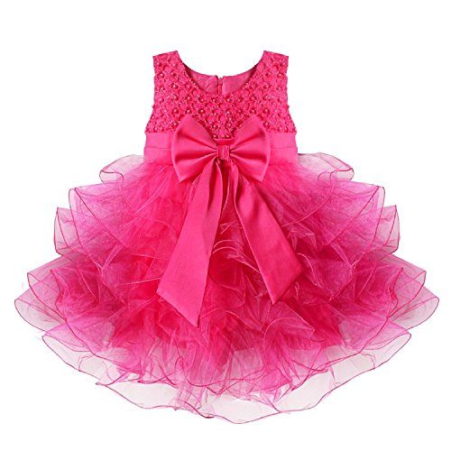 (イーエフイー)EFE こどもドレス 女の子 女児ドレス ふわふわチュチュスカート ビーズの上着 リボン飾り 結婚式 発表会 フォーマル 7色 60/65/70/75/80/90/100/110 ローズ 80