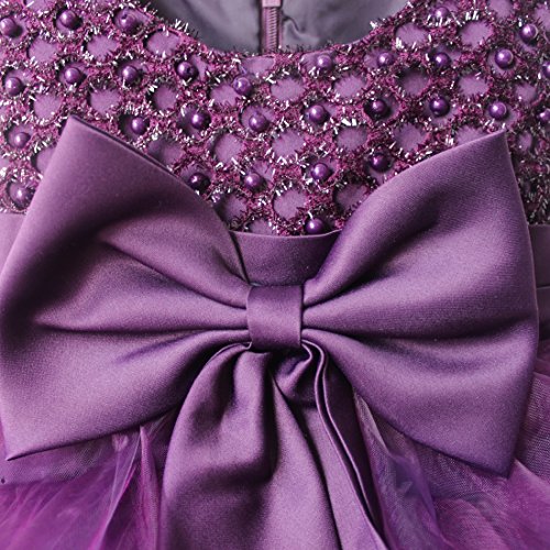 (イーエフイー)EFE こどもドレス 女の子 女児ドレス ふわふわチュチュスカート ビーズの上着 リボン飾り 結婚式 発表会 フォーマル 7色 60/65/70/75/80/90/100/110 (90, パープル)