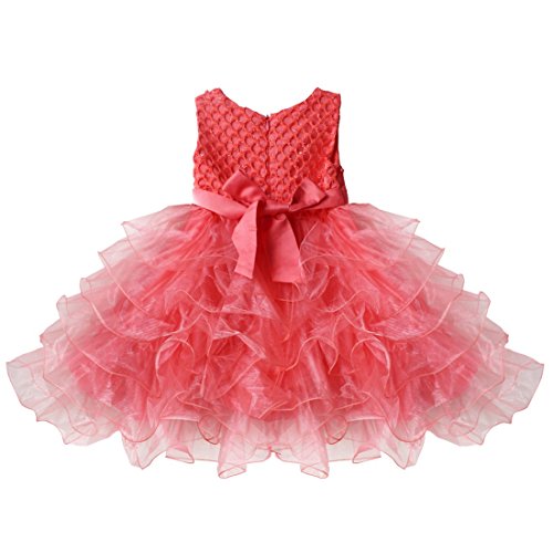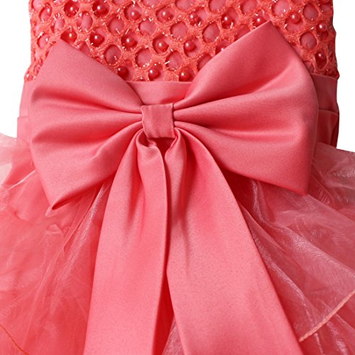 (イーエフイー)EFE こどもドレス 女の子 女児ドレス ふわふわチュチュスカート ビーズの上着 リボン飾り 結婚式 発表会 フォーマル 7色 65/70/75/80/90/100/110 (110, スイカレッド )