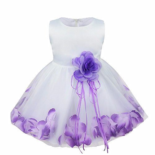 (イーエフイー)EFE ベビー フォーマルドレス 子供ワンピース 大きい花|花弁飾り|3層スカート 結婚式|入園式 7色 60/65/70/75/80 パープル 60