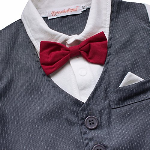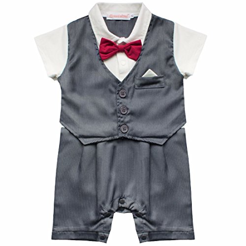 (イーエフイー)EFE ベビー服 紳士風 ネクタイ 半袖 結婚式 記念撮影 お祝い コットン製 ブラック グレー 80/90/95 ダックグレー 95
