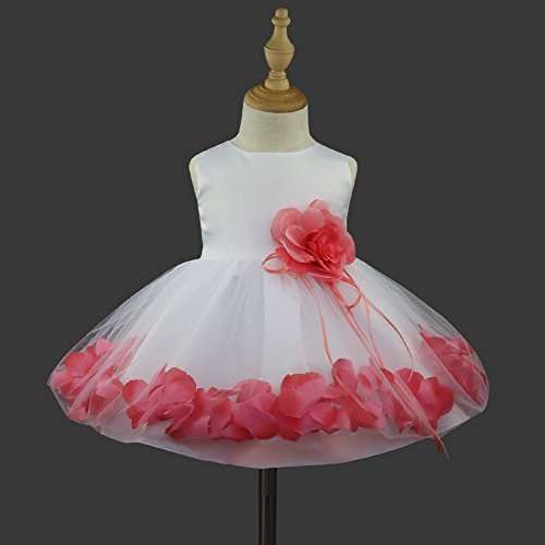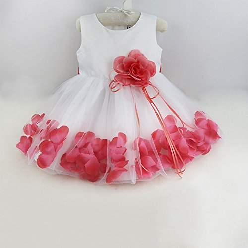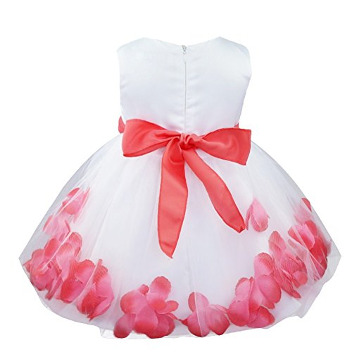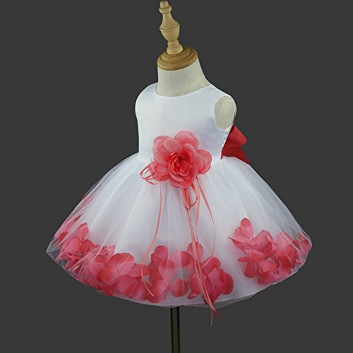 (イーエフイー)EFE ベビー フォーマルドレス 子供ワンピース 大きい花|花弁飾り|3層スカート 結婚式|入園式 7色 60/65/70/75/80 スイカレッド 65