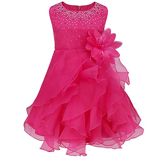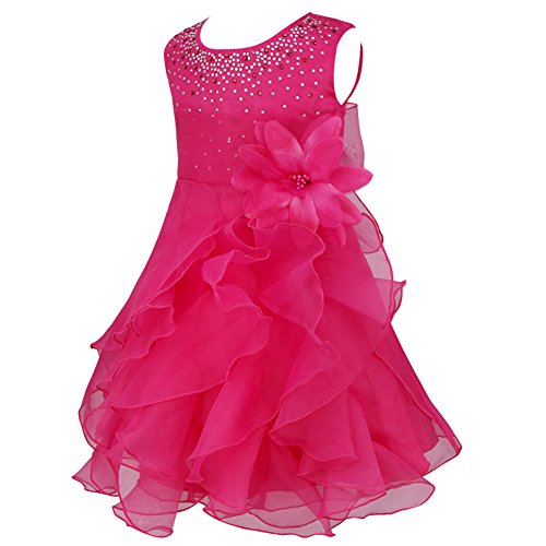 (イーエフイー)EFE こどもドレス 女の子 女児ドレス ふわふわチュチュスカート ビーズの上着 ガールズ キッズ ワンピース 子供服 リボン飾り ノースリーブ 結婚式 発表会 パーティー フォーマル 正式 7色 60/65/70/75/80/90/100/110 (60, ローズ2)