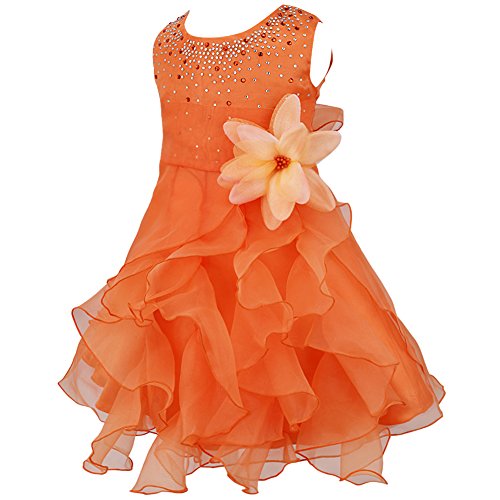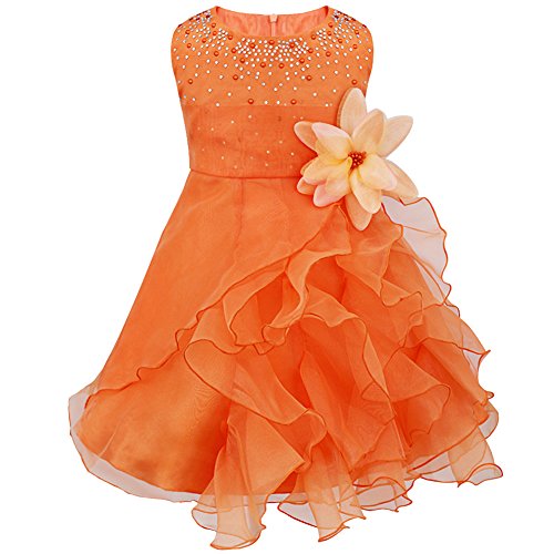 (イーエフイー)EFE こどもドレス 女の子 女児ドレス ふわふわチュチュスカート ビーズの上着 ガールズ キッズ ワンピース 子供服 リボン飾り ノースリーブ 結婚式 発表会 パーティー フォーマル 正式 7色 60/65/70/75/80/90/100/110 (80, オレンジ)