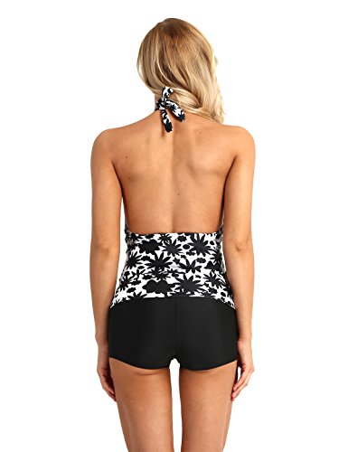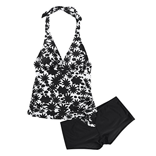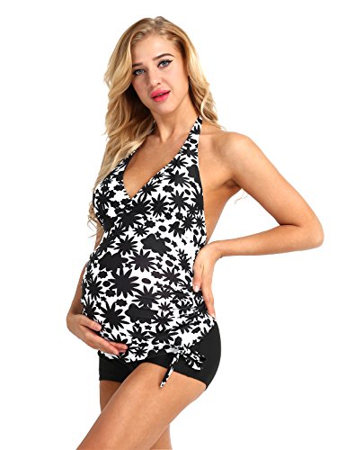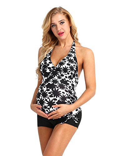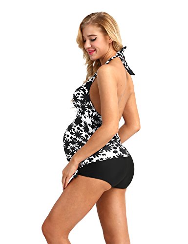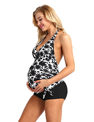 (イーエフイー)EFE マタニティ水着 妊婦水着 マタニティスイミング ママ水着 産後水着 ワンピース水着 体型カバー 産前産後兼用 トップス&パンツ 2点セット ホワイト&ブラック 2XL