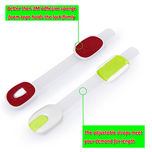 Baby Protectors子安全& Kids Proofにトイレラッチキャビネット&ストラップ、冷蔵庫、オーブン、食器洗い機、海、引き出し、赤ちゃんの保護、使用Better Than 3 M粘着調整可能ストラップとラッチシステム – 6個