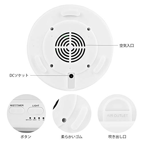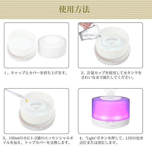 - 【ナイトライト/ムードライト】:色を変えるLEDソフトナイトライトは、楽しい静かな雰囲気、7色の変化、異なるモード(明暗)、異なる感情を作り出します。柔らかい色の変化と落ち着いた霧の流れで、すばらしい穏やかな雰囲気を作り出します。エレガントなデザインはどんな部屋にも適しており、ほとんど黙っているので、寝るときに使用するのに最適です。さらに経験を変えるためにアロマセラピーオイルを加えてください。