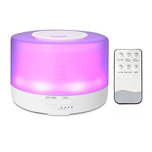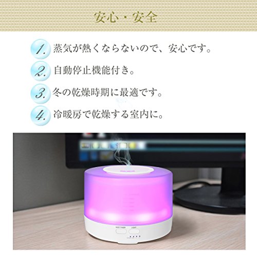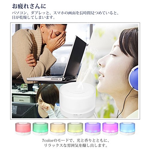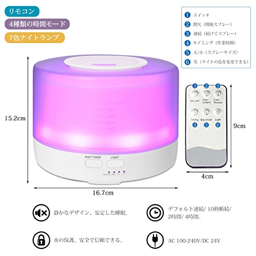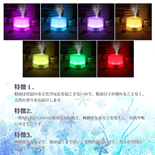 EIVOTOR アロマディフューザー 超音波式加湿器 空気清浄機 リモートコントロール 500ml 大容量 7色LEDライト変換 間接照明 空焚き防止 お部屋/オフィス//温泉など適用 誕生日プレゼント 1年保証
