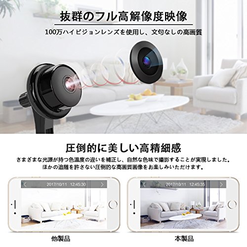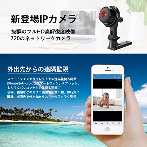 ベビーモニター EIVOTOR 720P 100万画素 ネットワークカメラ ミニ HD ナイトビジョン 監視カメラ マイク内蔵 暗視撮影 双方向通信 子供見守り スマホ/パソコン/テレビ対応 ブラック 電子版日本語説明書