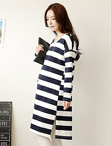 マタニティ ロング丈 tシャツ T 産前 長袖 春 秋 ストライプ ゆったり ルームウェアにも オリジナルアイテム付き 892-16273