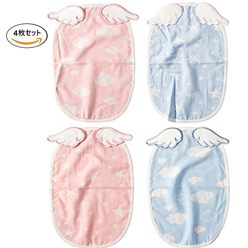 ELEMAI 汗取りパッド 4重ガーせ 4枚セット 綿100% 赤ちゃん あせとり 可愛い 天使の羽 新生児 ベビーギフト 出産祝い ベビー 男の子 女の子