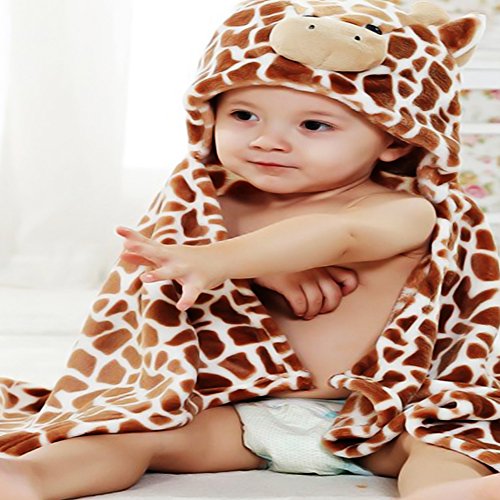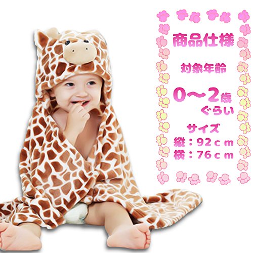 EMORTIA ベビー ポンチョ ふわふわ タオル ブランケット 柔らかい 気持ちいい どうぶつ かわいい フード付き (キリン)