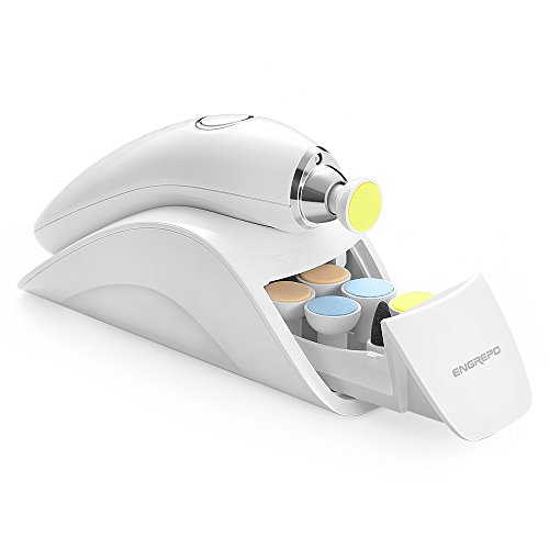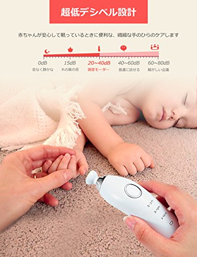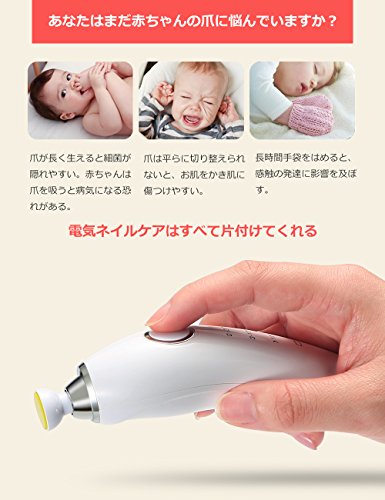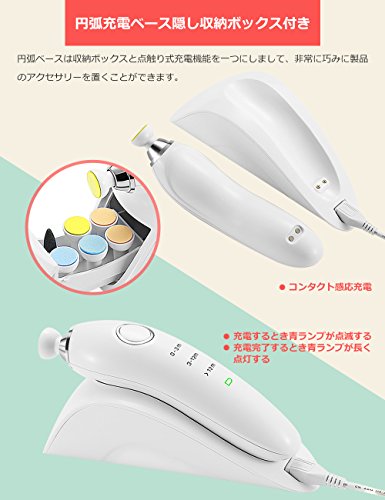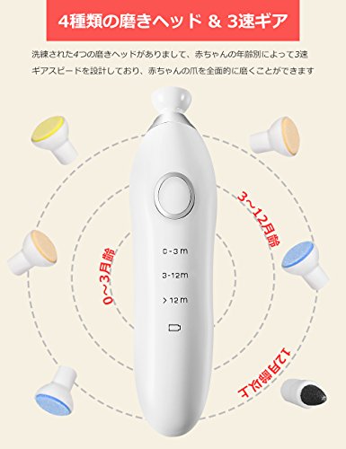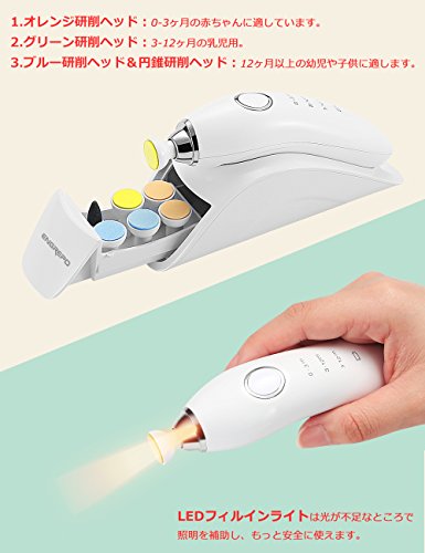 ENGREPO ベビーレーベル ネイルケアセット レーベル ホワイト(新生児~対象) ママにも使えるネイルケア(4種類の磨きヘッド、超低デシベル、3速ギア、LEDフィルインライト)円弧充電ベース隠し収納ボックス付き