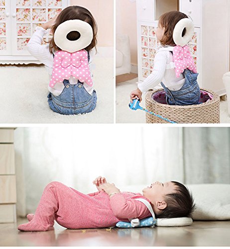 赤ちゃんのごっつん防止 天使のパッド 安全パッド 可愛いてんとう虫 ミツバチ 超軽量 リュックタイプ ベビー ヘルメット エンジェルパッド 頭を保護 セーフティー ひも調節可能 出産祝い 幼児枕 (ピンク)