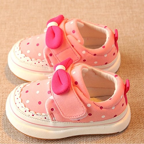 EOZY ベビー シューズ キャンバス ファーストシューズ 可愛い 蝶結び飾り 赤ちゃん靴 女の子 女児 キッズ スニーカー 春秋 ピンク 内寸12cm