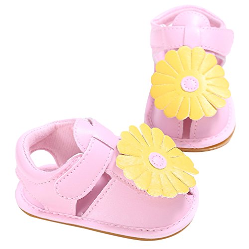 EOZY ベビー シューズ サンダル お花飾り 柔らかい 赤ちゃん靴 軽量 女の子 女児 幼児 子供靴 かわいい 七五三 出産祝い プレゼント ピンク 13cm
