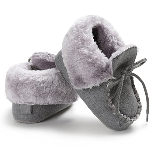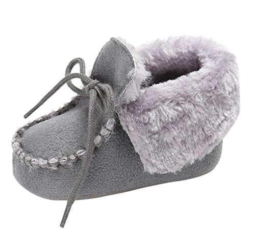 EOZY ベビーシューズ ファーストシューズ もこもこ 子供用 保温 男の子 女の子 可愛い 裏起毛 靴 滑り止め 出産祝い 誕生日プレゼント 11CM グレー