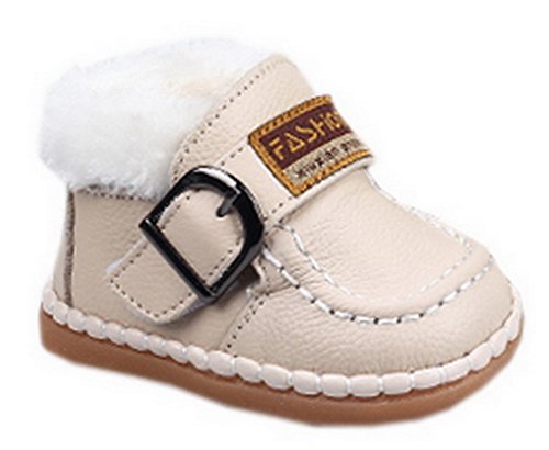 EOZY 可愛い 秋冬 ベビーシューズ ファーストシューズ 赤ちゃん靴 男の子 女の子 男女児 新生児 フォーマル マジックテープ 学歩靴 防寒保温 ソフト オフホワイト 14.5cm