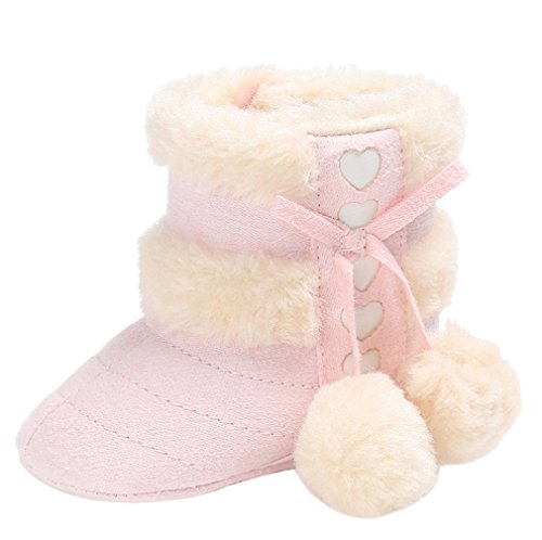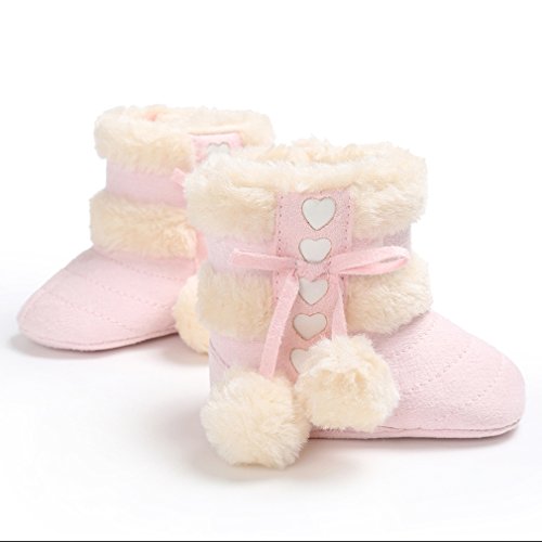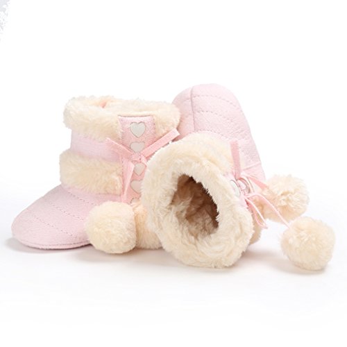 EOZY 赤ちゃん 靴 冬 裏起毛 暖かい ファーストシューズ ベビーブーツ ルームシューズ 女の子 可愛い 毛だま付き 出産祝い 誕生日プレゼント 12CM ピンク2