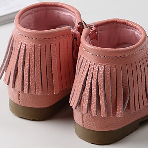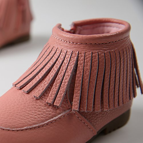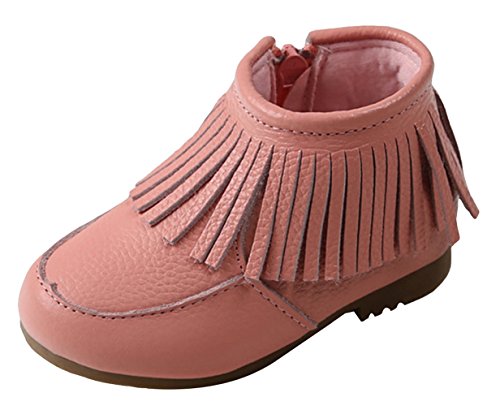 EOZY フリンジブーツ ショートブーツ エンジニアブーツ キッズ ベビー 女の子 レザー 子供靴 裏ボア付き 秋冬 防寒 可愛い コンフォート 通園 ピンク 16.3cm