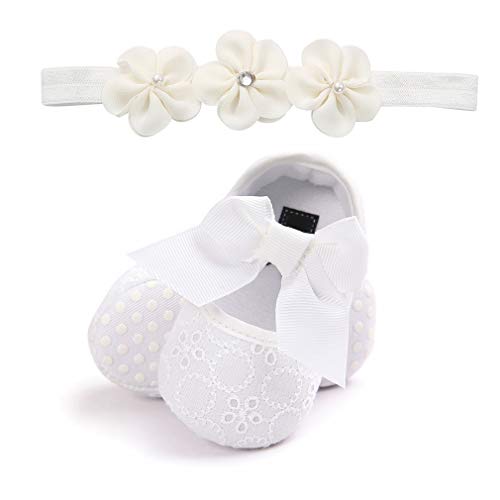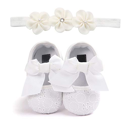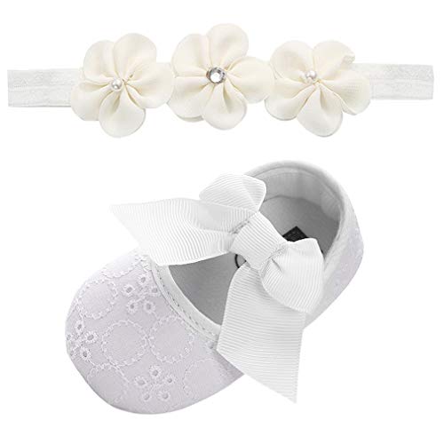 EOZY ベビー ヘアバンド ファーストシューズ 2点セット 可愛い 女児用 赤ちゃん 花髪飾り リボン付き ベビーシューズ 出産祝い プレゼント 写真撮影記念 18 B