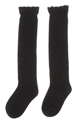 EOZY ベビー ハイソックス キッズ 靴下 女の子 無地 ガールズ フォーマル タイツ 結婚式 発表会 幼稚園 ニーソックス 秋冬 保温 M ブラック